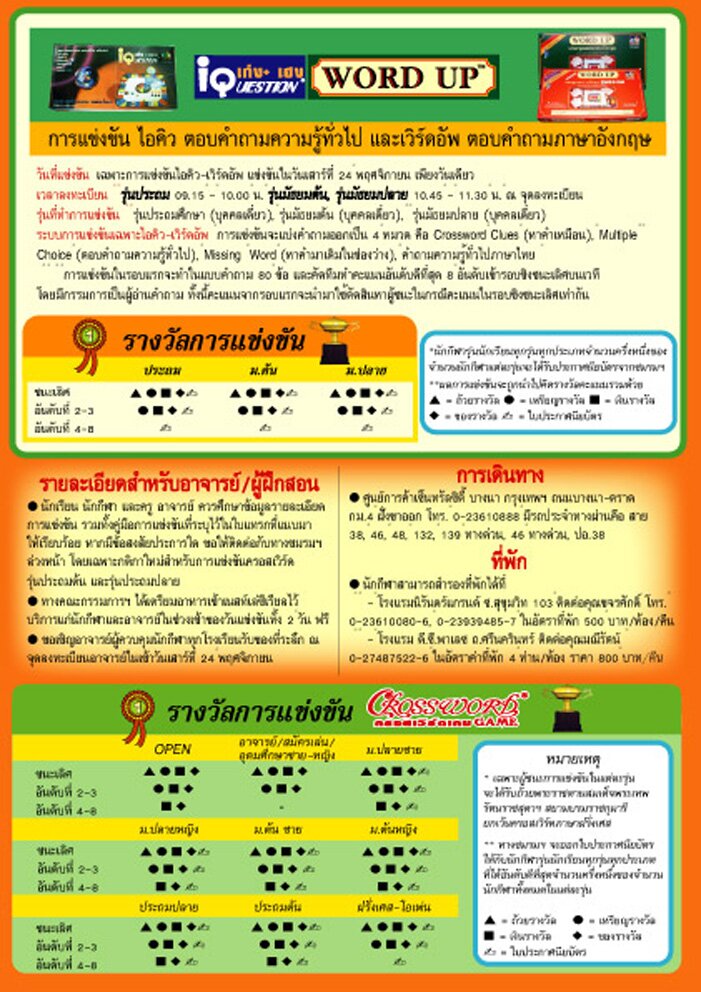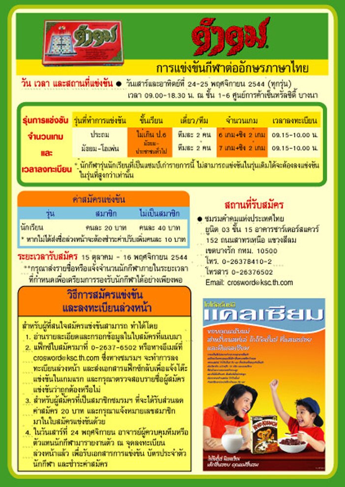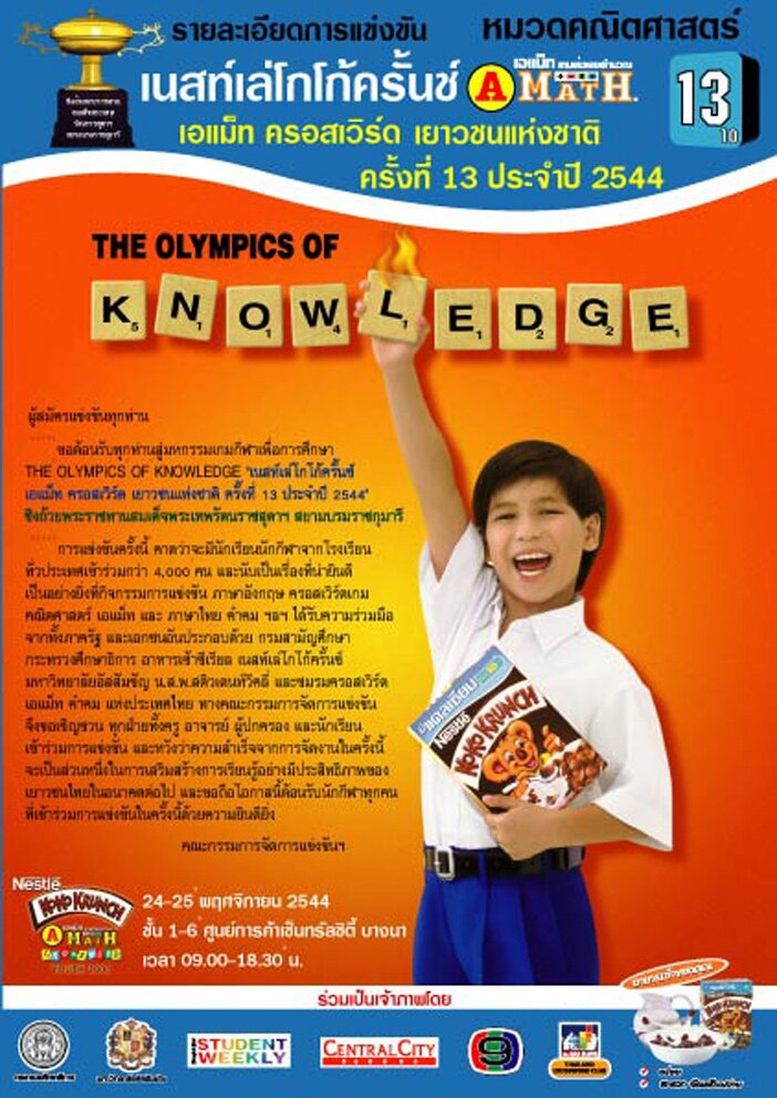 A-MATH CROSSWORD YOUTH 2001 24-25 พฤศจิกายน 2544 ณ ศูนย์การค้าเซ็นทรัลซิตี้ บางนา